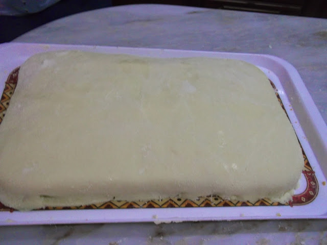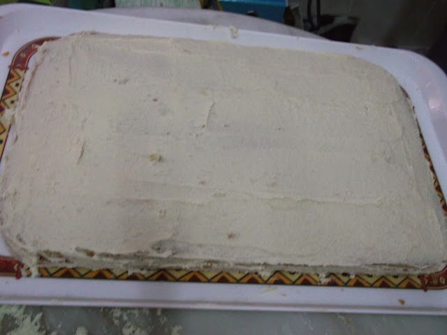 Parti o bolo ao meio e recheei com buttercrem e a cobertura também.Por cima leve a pasta de leite em pó,que já não passo sem ela.