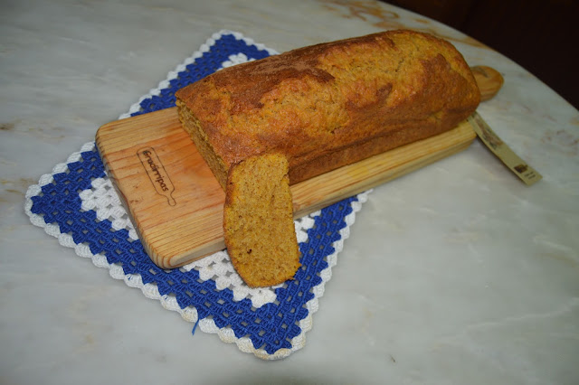 Misturar os ovos ,o açúcar e a abóbora,bater bem.