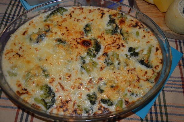 Deitei por cima da alheira os broculos cozidos,coloquei o bechamel e polvilhei com queijo ralado e levei ao forno até ficar tostado.